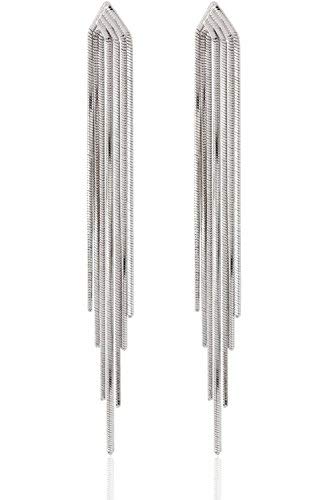 Argento 925 catena lungo nappa ciondola gli orecchini di goccia del partito di cocktail lineare orecchini gioielli da sposa