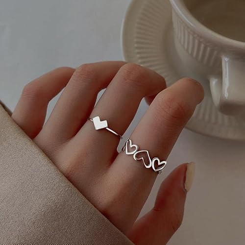 2 anelli aperti a forma di cuore, color argento, per donne e ragazze, eleganti e alla moda, per amici, gioielli durevoli e piacevoli