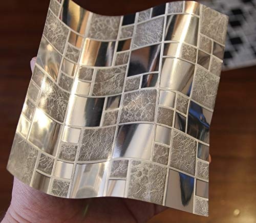 24 Pz Argento cromato Adesivi per Piastrelle Formato 15 x 15cm Cucina Adesivi per Piastrelle per Bagno adesivi - Coperture per piastrelle in vinile piatto stampato in 2D sottile Argento cromato