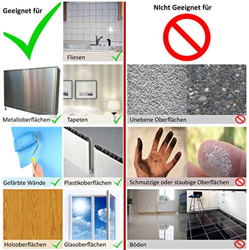 Facile da tagliare: questi adesivi, sia per la cucina che per il bagno, possono essere tagliati con le forbici quotidiane e adattati individualmente, senza problemi con lampade/prese. Inoltre, gli adesivi sono facili da pulire: basta pulirli con un detergente non abrasivo.