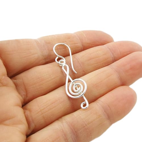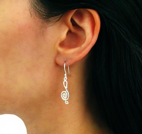 Argento massiccio 925 nota musicale, chiave di violino orecchini a goccia