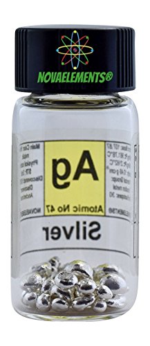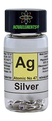 Argento metallico elemento 47 Ag, campione puro 3 grammi 99,99% in fiala di vetro con etichetta