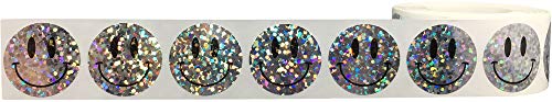Argento olografico Sparkle Happy Face Etichette 1Inch 500 adesivi totali