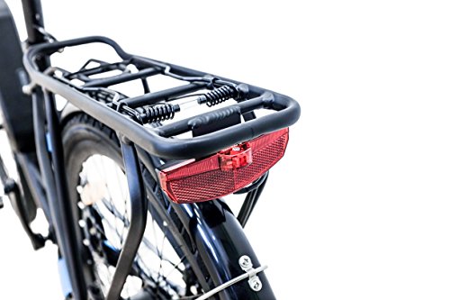 Le manopole in finta pelle, i cerchioni ed il piantone sella in alluminio, il portapacchi posteriore, il copricatena in alluminio e i raggi total black conferiscono alla bicicletta un design ed uno stile unico ed urbano