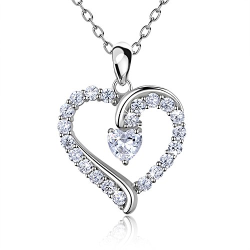 ♥ Idea di design ♥ "Tu sei l'unico nel mio cuore". La collana del cuore è un simbolo classico dell'amore. Questa splendida collana in argento 925 Sterling Silver ha forma cardiaca elegante che simboleggia l'eternità dell'amore. Un diamante cubico di Zirconia a forma di cuore scintillante che si trova nel centro del cuore. Mostra a lei quanto ti intende con questa elegante collana: "Sei così bella, brilla come un diamante nel cuore".