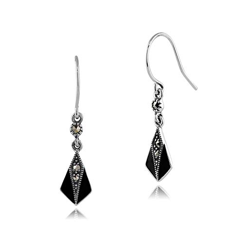 Argento Sterling 0,11 Ct Marcasite & Smalto Art Deco Orecchini A Goccia