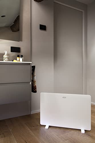 Termoconvettore con pannello in vetro temperato ideale come apparecchio free standing o appeso alla parete