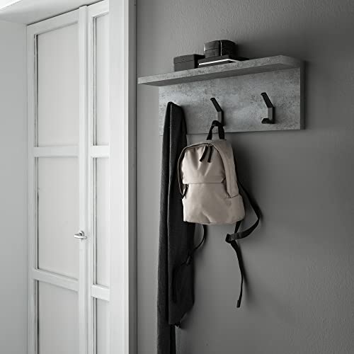 ARHome Appendiabiti da Parete, 60 x 20 x 12 cm, Cemento Scuro, Appendiabiti con mensola, Made in Italy