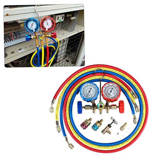 Set di calitteri diagnostici a 3 vie professionisti per refrige per R134A, R12, R22 e R502. Progettato per il controllo della pressione in linee CA, determinazione delle perdite, top-off Freon, lavoro di recupero e ricariche A/C complete