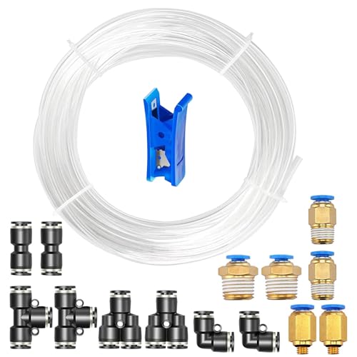 Cosa ottieni: Tubo pneumatico per tubo dell'aria PU da 4 mm OD 2,5 mm ID 10 metri 32,8 piedi Trasparente + 14 pezzi Nero Raccordi per tubi a pressione per tubo, 2 divisori + 2 gomiti + 2 T + 2 diritti.