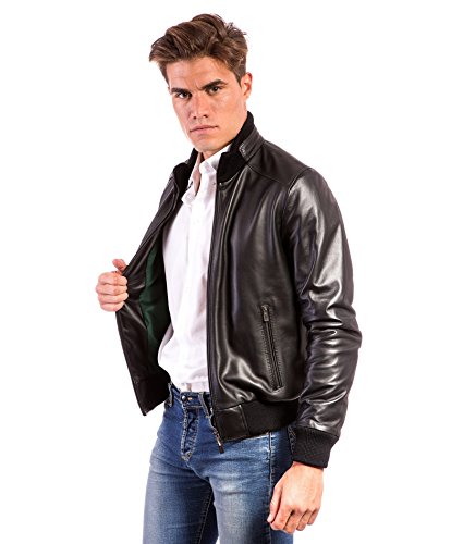 D'Arienzo Giacca Bomber in Pelle Nera Uomo Giubbotto Giubbino Vera Pelle Made in Italy 107 Nero/54