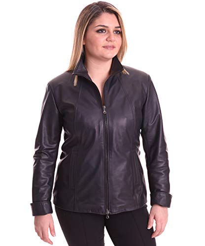 D'Arienzo Giacca Pelle Nera Donna Comoda Vera Pelle Giacca Made in Italy Sasha Nero/L