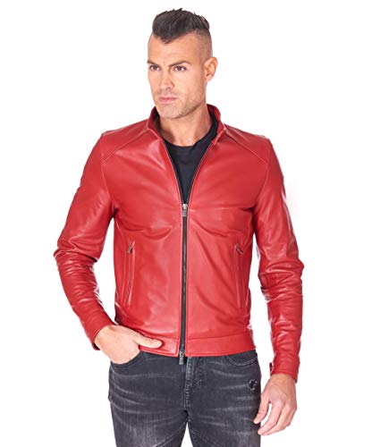 D'Arienzo Giacca Pelle Rossa Uomo Giubbino Biker Vera Pelle Made in Italy Ted 46/Rosso