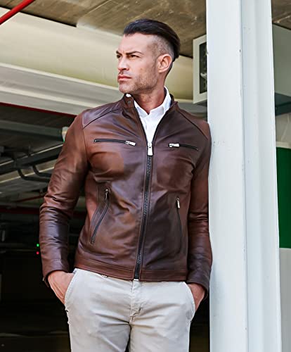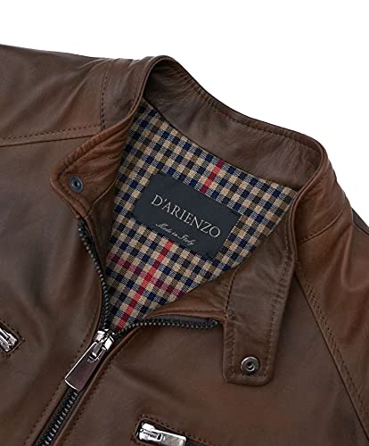 D'Arienzo Giacca in Pelle Uomo Marrone Effetto Vintage Giubbotto Giubbino Moto Vera Pelle Made in Italy Hamilton 56/Marrone