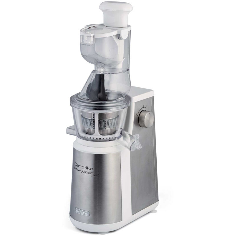 Centrika Slow Juicer Metal il nuovo estrattore di succo dedicato a tutti gli amanti delle centrifughe e dei succhi di frutta sani e genuini. Grazie all'innovativa tecnologia di estrazione a freddo, si mantengono inalterati i preziosi elementi nutritivi della frutta e della verdura, perch la spremitura avviene senza lama e con una rotazione lenta. Nessuna ossidazione e nessun riscaldamento degli alimenti, per un succo concentrato, ricco di nutrienti, fresco e salutare. Il risultato una spremuta omogenea e senza residui. Con tappo antigoccia e doppio raccoglitore, uno per il succo e uno per le scorie. Con camino extralarge per inserire frutta! Facile da smontare e pulire. Con Centrika Slow Juicer inoltre, si ottiene fino al 30% in pi di succo rispetto alle centrifughe tradizionali!