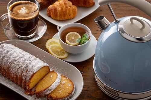 Ariete 2877 Bollitore elettrico 1,7 Litri di Design - Infusi, tè e tisane - Autospegnimento - 2000 Watt - Acciaio Inox - Linea Vintage - Celeste