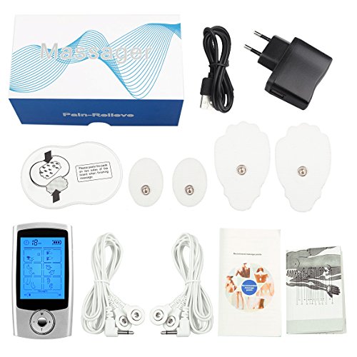 ARINO Apparato / Dispositivo Massaggiatore TENS EMS per Massaggi, 2 Canali 16 Programmi per Massaggio a Impulso per Trattare Tensione Muscolare, Collo, Sciatica e Dolori Muscolari