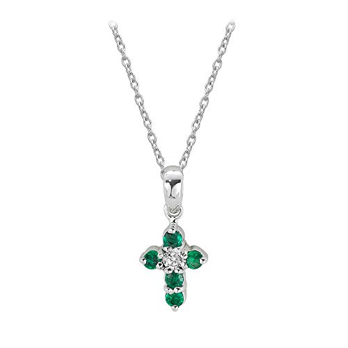Aris Diamond - Collana da donna con ciondolo a forma di croce, in oro bianco 14 carati (585) con smeraldo e diamante