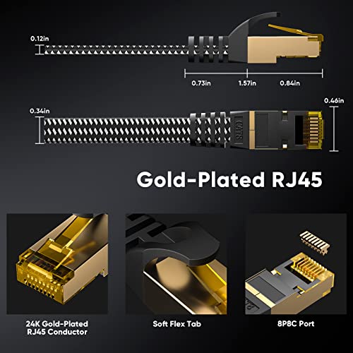 Cavo Ethernet Cat 8 ad Alta Velocità - ARISKEEN cavo ethernet Cat 8 supporta larghezza di banda fino a 2000 MHz e velocità di trasmissione 40 Gbps, che fornisce un trasferimento di dati ad alta velocità per applicazioni server, gioco e streaming video HD.