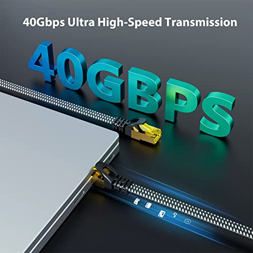 Cavo Ethernet Cat 8 ad Alta Velocità - ARISKEEN cavo ethernet Cat 8 supporta larghezza di banda fino a 2000 MHz e velocità di trasmissione 40 Gbps, che fornisce un trasferimento di dati ad alta velocità per applicazioni server, gioco e streaming video HD.