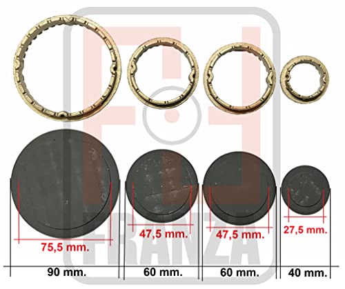 4 anelli in ottone con le relative coperture smaltate nere lisce lucide
