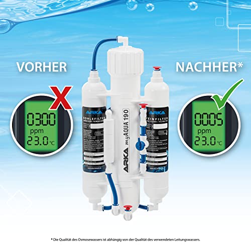 ARKA Aquatics myAqua190 reverse osmosis system for up to 190 litres per day, filters up to 99% of pollutants, salts and bacteria from the water, ideal for any saltwater and freshwater aquarium,
