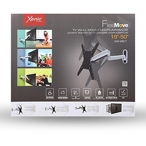Arkas FlexiMove LEW 250 T - Supporto da parete per TV da 19" a 50", completamente mobile, orientabile, regolabile in altezza, portata massima: 20 kg, colore: Argento