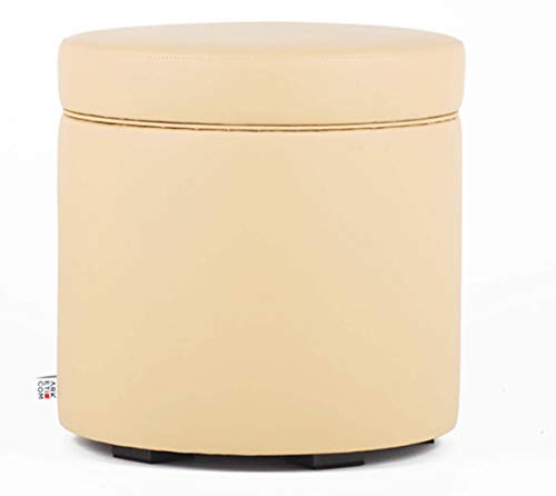 Elegante pouf rotondo con vano contenitore per arredamento interni foderato e rivestito in ecopelle, ma anche sfoderabile! Pouff poggiapiedi sgabello pouf cassapanca. Per salotto o camera da letto, come tavolino basso o davanti al tv e ai piedi del letto o portagiochi misure disponibili: cm 84x42x42 peso kg 13,5 o 42x42x42 peso 8 kg. Pouf in legno fatto a mano piedi e feltro antiscivolo. 100% made in italy. Contattateci per personalizzazioni.