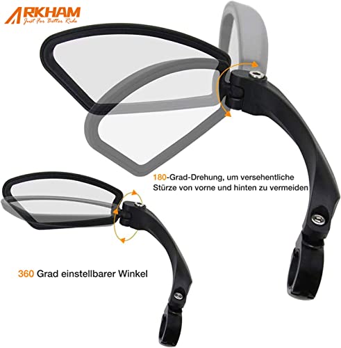 Arkham Specchio retrovisore per bicicletta,Specchio per bicicletta quadrato sinistro, specchio in acciaio inossidabile HD, 21-26 mm regolabile ruotato a 360 ° per manubrio della bicicletta (1 pezzo)