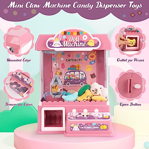 Arkyomi Mini Macchina per Artigli Grabber Caramelle Machine con 10 Bambole 10 Palline 20 Valuta di Gioco,elettrica luci e Suoni interattivi Claw Machine