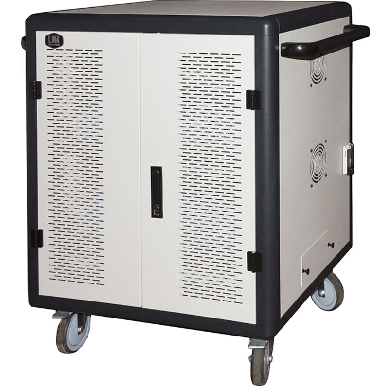 Armadio con chiusura a chiave che permette la protezione e lalimentazione di 40 notebook o tablet custoditi all'interno.Ideale per scuole o uffici, dove si necessiti di un posto sicuro in cui alloggiare dispositivi elettronici, dando la possibilità di ricaricarsi e impedendo il loro surriscaldamento.Con due multiprese posteriori con 20 prese universali italiane/Schuko ciascuna, a cui collegare i cavi e gli adattatori dei dispositivi da ricaricare.I dispositivi si posizionano in verticale sui ripiani, separati da divisori.I cavi di alimentazione per i dispositivi si possono organizzare agganciandoli a delle alette sui ripiani.Ci si possono alloggiare dispositivi di misura massima cm 28 x 37, altezza cm 2,3.I separatori dei ripiani sono removibili, in questo modo si possono alloggiare anche notebook o altri dispostivi più larghi.Con 4 ruote incluse di cui due bloccabili.Con porte traforate con chiusura a chiave, permette la protezione dei dispositivi contenuti mentre si ricaricano.Con