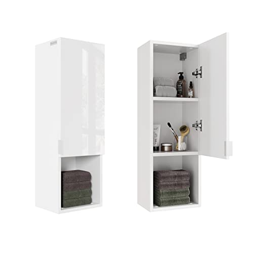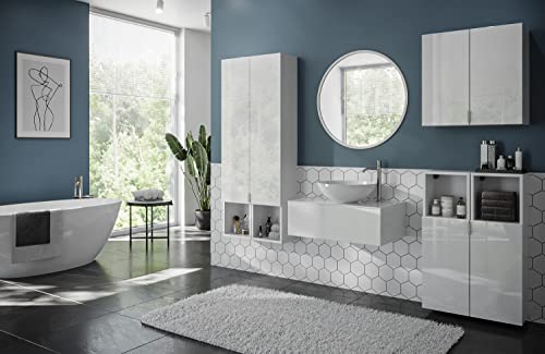 Armadietto da bagno pensile, con chiusura ammortizzata Soft-Close, 90/60 x 30 x 25 (altezza x larghezza x profondità), colore bianco opaco e bianco lucido
