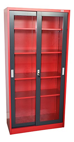 Armadietto portadocumenti St. Petersburg, colore rosso scuro, per ufficio, magazzino, in acciaio, con parte anteriore in vetro e ante scorrevoli