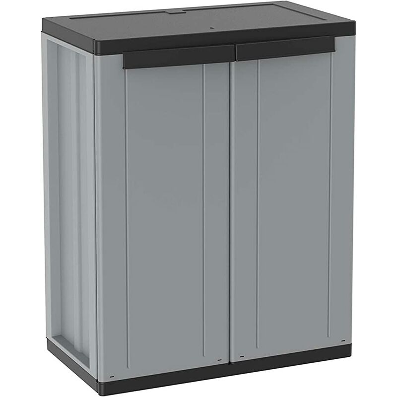 Elegante serie di armadio per esterno basso con 1 ripiano interno oltre il fondo del mobile per un totale di 2 ripiani, peso massimo consigliato 20 Kg per ripiano. Realizzati in resina antiurto estremamente durevole nel tempo che resiste ad urti e agenti atmosferici per ridurre al minimo la manutenzione. Tutti i mobili sono doppia anta apribili a 180 gradi e i ripiani sono regolabili in altezza. Armadi studiati per il balcone, terrazzo e giardino per riporre tutti gli oggetti del tempo libero della pulizia e del giardinaggio. Il mobile ha un'elevata tolleranza alle alte temperature anche se lasciato sotto il sole i colori non rovinano. Facile da pulire si consiglia di utilizzare un detergente neutro ed acqua ed evitare l'uso di detergenti aggressivi, manutenzione semplice e veloce puo' essere lavato tranquillamente.