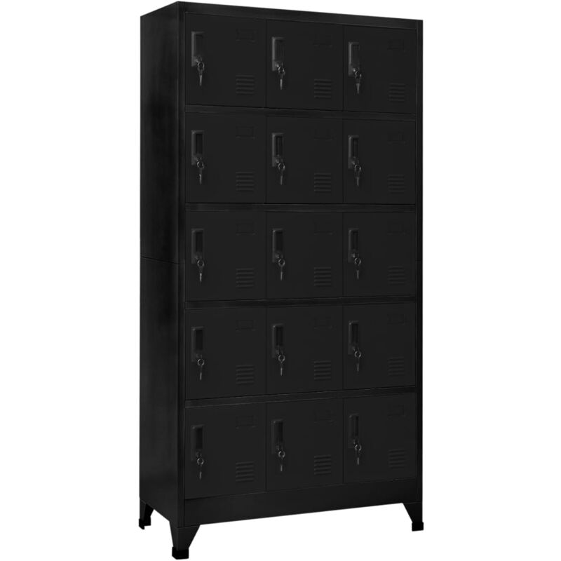 Questo armadietto a chiave ha un design moderno e sarà un'ottima aggiunta decorativa a qualsiasi stanza o ufficio. Questo armadietto è realizzato in acciaio, che lo rende resistente e facile da pulire. Ogni scomparto è dotato di una porta chiudibile a chiave con prese d'aria. L'armadietto offre ampio spazio per riporre vestiti e altri oggetti personali al sicuro. Inoltre, la targhetta porta nome e le prese d'aria consentono di disporre ordinatamente i vostri oggetti. Questo armadietto a chiave è adatto a scuole e uffici per riporre varie cose. Colore: Nero Materiale: acciaio Dimensioni: 90 x 40 x 180 cm (L x P x A) 15 ante con serratura (2 chiavi incluse per ogni porta) Con prese d'aria e portatarghette sulle porte Capacità di carico per ripiano: 25 kg Capacità di carico totale: 160 kg Assemblaggio richiesto: Sì ATTENZIONE: Per evitare il ribaltamento questo prodotto deve essere utilizzato con il dispositivo di fissaggio a parete fornito. Legal Documents: Maggiori dettagli su come