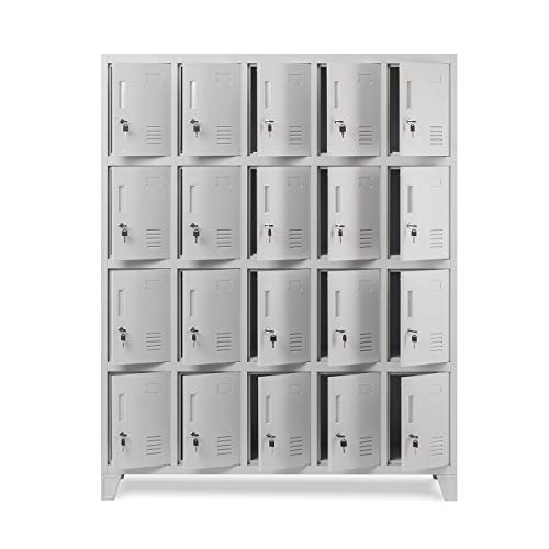 Armadietto spogliatoio Armadio metallico con 20 Scomparti Fessure di ventilazione Rivestimento in polvere 172 cm x 136 cm x 45 cm (Grigio)