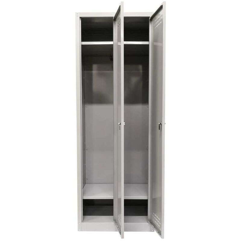 Armadio in metallo per spogliatoio con 2 ante. LxPxH 60x40x167. GrimaArmadio spogliatoio in metallo da 60x40x167 cm, dotato di due ante con maniglia lucchettabile, 2 ripiani interni con 1 pannello separatore laterale.Armadio monoblocco con zoccolo di base metallica alto 7 cm. Dotato di maniglia lucchettabile (lucchetto non incluso).Il sistema di montaggio ad incastro e bullone conferisce stabilità alla struttura senza penalizzare la semplicità dell'assemblaggio.Conforme al D.Lgs. 81/2008 ai sensi del D.Lgs. 626/1994. Caratteristiche del prodotto Marca Grima Colore Grigio Finitura Prodotto Colorato Marca Grima Prodotto Made in Italy Montaggio Incastro Dimiensioni prodotto Larghezza: 0.6 m. Altezza: 1.67 m. Profondit: 40.0 cm. Peso: 25.0 Kg. Dimensioni Imballo Larghezza: 0.0 cm.