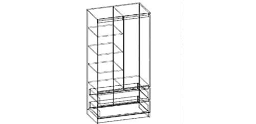 Armadio con parete divisoria per un appendiabiti e 4 ripiani, molto spazio per conservare gli indumenti.