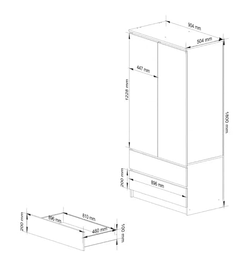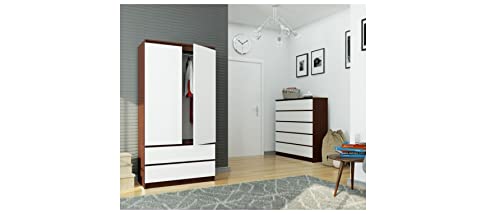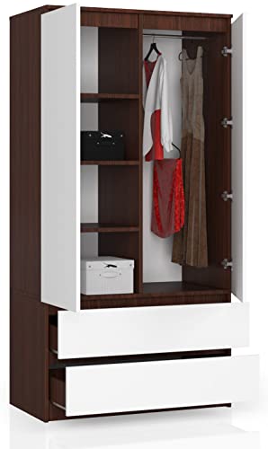 BDW - Armadio a 2 ante, 4 ripiani, spazio per appendere, 2 cassetti, per camera da letto, soggiorno e corridoio, 180 x 90 x 51 cm (“Venga”/ bianco)