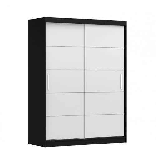 Armadio con ante scorrevoli a 2 ante, con molti ripiani e asta appendiabiti, porte scorrevoli (L x A x P) 150 x 200 x 61 - Lara 6 (nero + bianco)