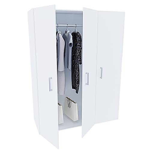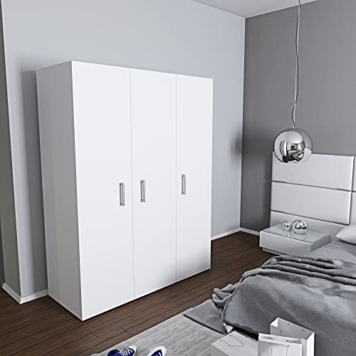 Armadio Armadietto Con 3 Ante e 5 Ripiani Montana Con Asta Appendi Abiti Guardaroba Camera Da Letto Salotto Salone Ingresso 175.4 x 115.8 x 49.5 cm Colore Bianco