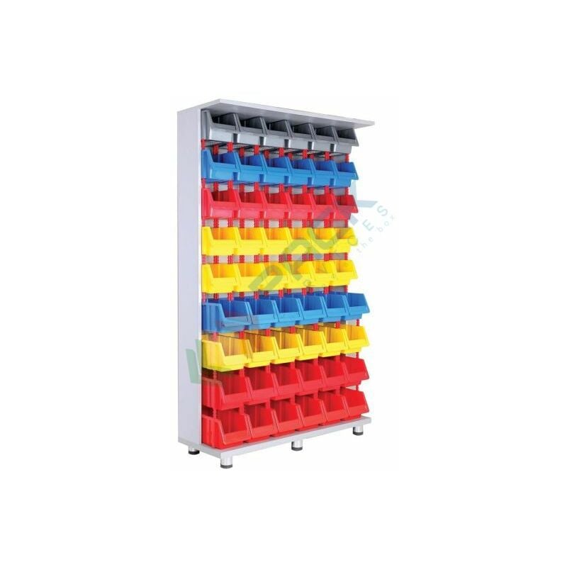 Rappresentano infatti la soluzione ideale per tutte le esigenze di magazzinaggio per ferramenta, officine e magazzino come portaminuteria. Il lato frontale aperto del contenitore portaminuteria rende facilmente accessibili i componenti al suo interno. Le cassette bocca di lupo presenti nell'armadio sono componibili e sono collegate tra di loro tramite i perni (Cod. PSSBL-GN) applicati sui 4 lati della cassetta. Fornito già montato. Armadio con 54