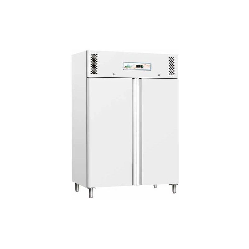 Codice RS0114 - Armadio frigorifero a 2 porte, modello FO-GNB1200TN, dimensioni cm. 134x80x201 (lxpxh), temperatura di esercizio +2/+8°C, 230 volt, 600 watt, 1104 lt. Dotazione interna n.6 griglie GN2/1. Armadio refrigerato GN 2/1. Struttura in lamiera verniciata epossidica bianca, interno in alluminio. Refrigerazione statica con ventilatore e convogliatore d'aria interno per uniformare la temperatura. Gruppo incorporato in vano superiore. Vano motore con fianchi coibentati. Controllo temperatura elettronico con termostato digitale. Resistenza elettrica intorno alla cornice porta per eliminazione della condensa. Eliminazione dell'acqua di condensa tramite bacinella. Porta con molla di ritorno. Chiusura porta con chiave. Guarnizione porta estraibile senza utensili. Fondo con angoli arrotondati. Pannelli esterni di fondo e schienale in lamiera galvanizzata. Piedini in acciaio inox Aisi 304 regolabili in altezza.