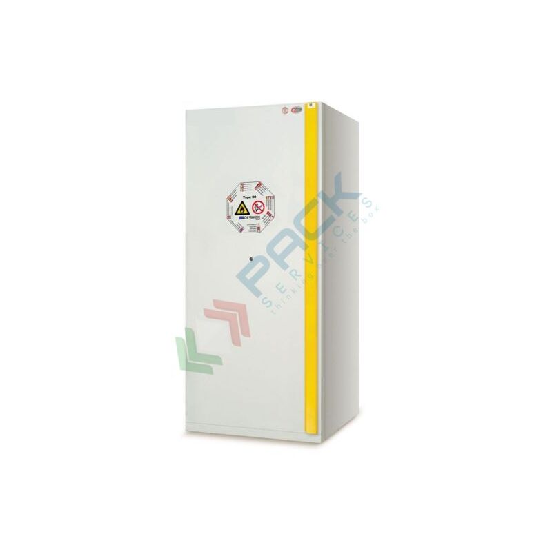 ARMADI DI SICUREZZA PER LO STOCCAGGIO DI PRODOTTI INFIAMMABILI Certificati secondo le norme EN14470-1 Type 90 e EN 16121 Armadio di sicurezza per lo stoccaggio di prodotti infiammabili realizzato in lamiera di acciaio elettrogalvanizzata dello spessore di 1 - 1,5 mm, piegata a freddo, Mis. esterna 895 L x 600 P x 2050 H mm, Mis. interna 796 L x 446 P x 1540 H mm, chiusura automatica delle ante quando la temperatura ambiente supera i 50 °C. L'armadio di sicurezza per infiammabili è certificato secondo le norme EN14470-1 e EN16121, garantisce resistenza al fuoco certificata 90 min. Armadio con 3 ripiani in acciaio inox (carico max 70 Kg distribuiti uniformemente) + 1 vasca con griglia (capacità 25 litri), capacità di stoccaggio 128/160 bottiglie da 1 Litro per armadio, apertura dell'anta ad incavo a sinistra. Colore grigio. Caratteristiche tecniche: Misura esterna: 895 L x 600 P x 2050 H mm Mis. interna: 796 L x 446 P x 1540 H mm Accessori in dotazione: 3 ripiani in acciaio inox (carico