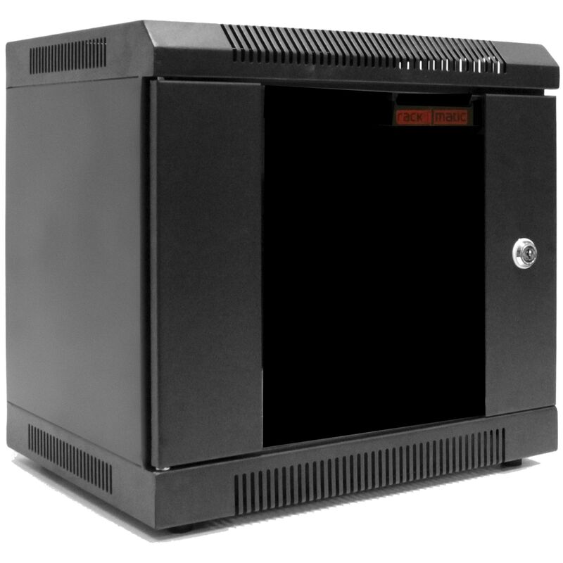 Rack di 10 RackMatic di 6U e dimensioni esterne in mm di 370 (larghezza) x 280 (in basso) x 350 (altezza). Solo i frame frontali sono configurabili in profondità, ma di default sono forniti installati a una distanza di 238 mm dal fondo dell'armadio (fondo utile).