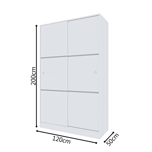Armadio Reus Guardaroba Armadietto Robusto Resistente Multiuso con 1 Barra Appendiabiti 2 Ante Scorrevoli 4 Ripiani Arredo Camera da Letto Arredamento 200 x 120 x 50 Cm Colore Bianco Lucido