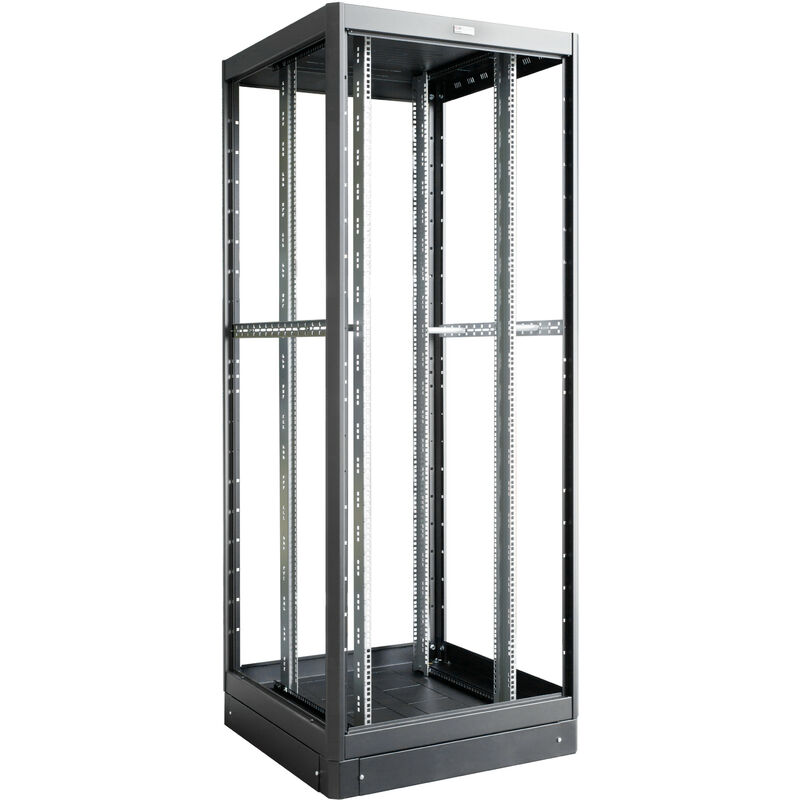 Armadio Server Rack 19'' 800x800 42 Unità Nero Open Frame Solido armadio rack a pavimento extra- large caratterizzato da una struttura solida e robusta con montanti 19 da 2 mm di spessore e angolari innovativi da 3 mm di spessore. Alla robustezza della struttura si unisce il design innovativo e moderno, che non trascura la praticità nell installazione. Infatti, utilizzando una semplice chiave, l’armadio può essere montato e smontato facilmente, permettendo quindi di effettuare un’installazione veloce. Caratteristiche · Tetto predisposto con foratura per sistema di ventilazione e provvisto di ingresso cavi · Fondo predisposto per ingresso cavi e dotato di sportello che chiuso permette di appoggiare apparati come UPS, aperto favorisce l’areazione · Completo di coppia di montanti 19†anteriori e posteriori dotati di conta unità · Capacità di portata statica 500 kg, 220 kg su ruote · Con zoccolo incluso nella fornitura · Grado di protezione IP20 secondo la norma EN 60529 · Colore