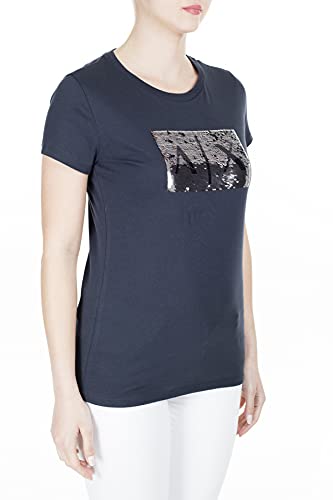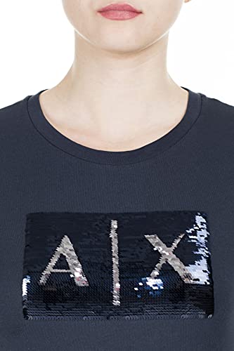 Armani Exchange Basic con logo sequin, T-shirt, Donna, Azul (Navy Silver), XS