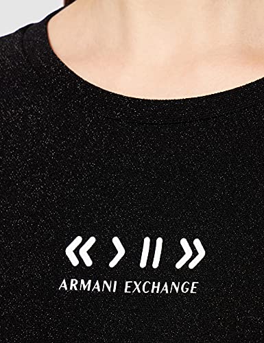 ARMANI EXCHANGE Body Corte con Scollo Rotondo, vestibilità Comoda, Scritta in Lingua Tedesca Music And, Logo sulle Maniche Maglia di Tuta, Nero, L Donna