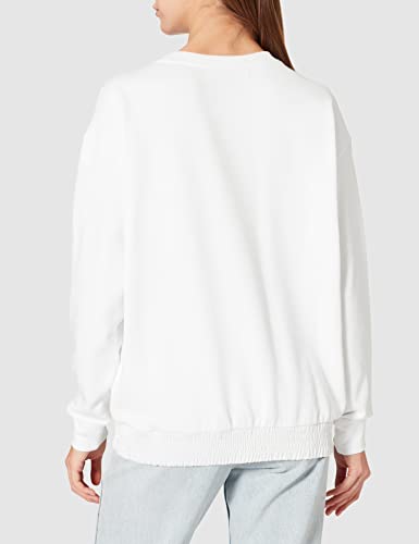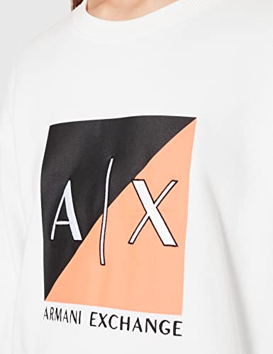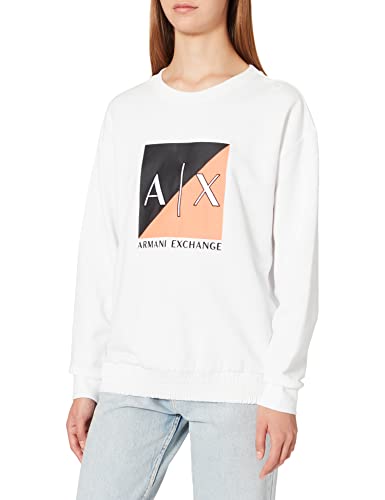 ARMANI EXCHANGE Felpa con Scollo Rotondo, Spalle a Goccia, Stampa Macro Bicolore e Logo Ricamato, Fondo in Nylon. Maglia di Tuta, Bianco, M Donna